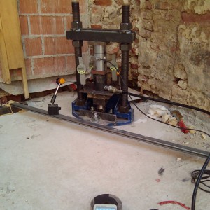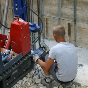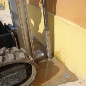 Z vrtalnim strojem se najprej pripravijo izvrtine premera približno 7 cm vertikalno skozi osnovni temelj objekta. Če objekt nima osnovnega temelja, potem se lahko vrtine izvrtajo tudi pravokotno ali z majhnim nagibom skozi temeljni zid.